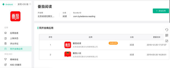 仅从工商信息上,还没法看出番茄小说和字节跳动的干系。但界面新闻记者经由过程七麦数据网站查询发明,番茄小说的开发者客岁12月曾推出过一款名为番茄浏览的产物,而番茄浏览的Bundle ID正隶属于字节跳动。厥后,番茄浏览因不知名缘由弃用,新上线的番茄小说也把Bundle ID改成了com.tomato.reading。