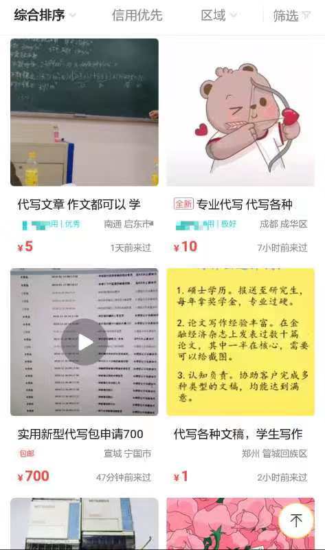然则,现在这些“学霸”却经由过程二手电商平台宣布信息,招徕“代写”买卖,从日志、作文到寒暑假功课一概通吃。关键是价格便宜,收费体式格局天真——除平台包管付出外,还能挑选货到付款、分期付出,这着实让人啼笑皆非。