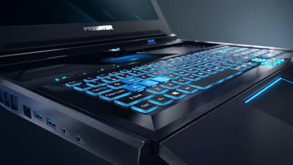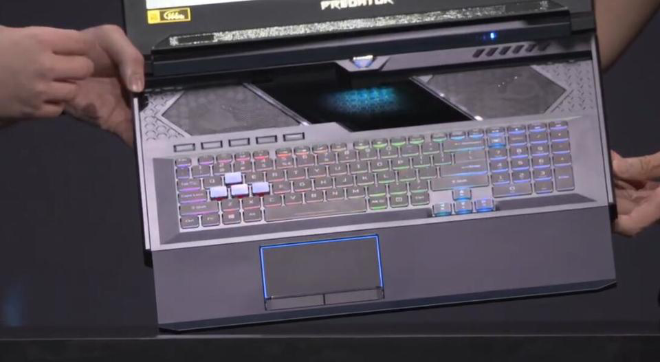 个中最引人瞩目的当属宏碁掠夺者 Helios 700 游戏本,这款电脑接纳奇特的 HyperDrift 键盘,这一键盘能够向用户侧滑动以此显露键盘地位的电扇,键盘滑出以后天然构成一个键盘托,而触控板恰好就在这一键盘托地位,更相符人体工学。