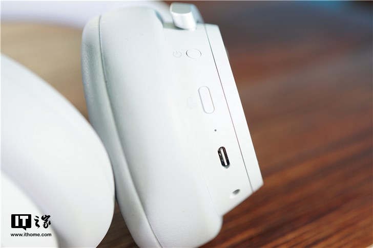 ▲耳机电源键、静音键、充电插口及有线衔接插口