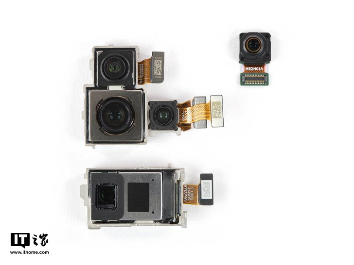 华为 P30 Pro 内共有五颗摄像头,这也造诣了华为 P30 Pro 特殊的照相才能,从左上角最先依次是 2000 万像素超广角镜头、4000 万像素广角镜头、ToF 镜头、800 万像素长焦镜头和右上角的 3200 万像素前置摄像头。一切的摄像头拆解相对而言对照轻易,只要一根排线与主板相连。