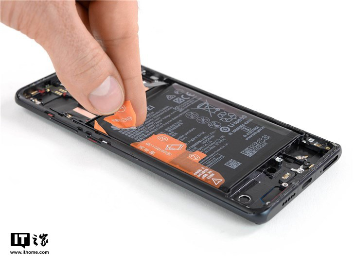 华为 P30 Pro 电池局部相对而而言异常好处置惩罚,电池旁边有特地的拉环,这在之前华为 Mate 20 系列中也有相似的设想。