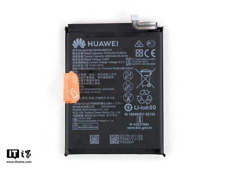 华为 P30 Pro 手机电池的典范容量为 16.04Wh(4200mAh),这与华为 Mate 20 Pro 一致。超过了三星 Galaxy S10+ 的 15.79Wh 和苹果 iPhone XS Max 的 12.08Wh。