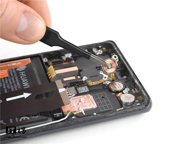 拆解过程当中,这局部拆开与后盖拆开难度一致,由于都是玻璃材质另有大批的胶水粘连。不外,在轻微加热后,再用特地的对象撬开相对而言并没有甚么难度。