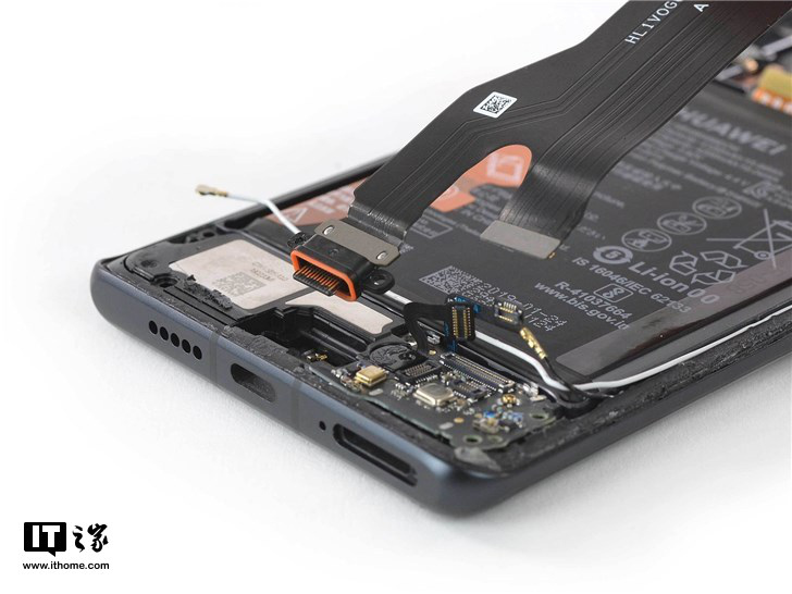 想要拆下华为 P30 Pro 的屏幕指纹模块,就先要拆下华为 P30 Pro 长长的排线,这根排线与 USB-C 接口相连。