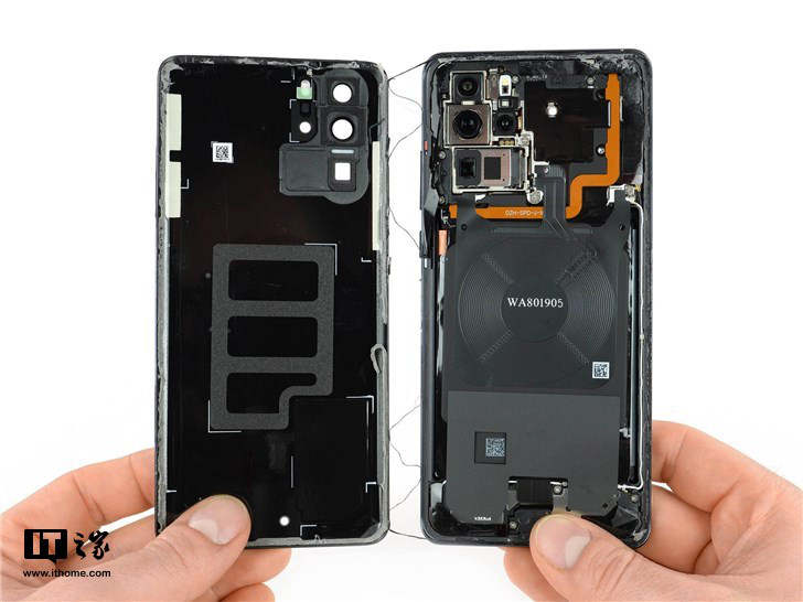 华为 P30 Pro 后壳的是接纳玻璃材质,自身会对拆解带来一些难题,但这也让华为 P30 Pro 的无线充电成为可能。