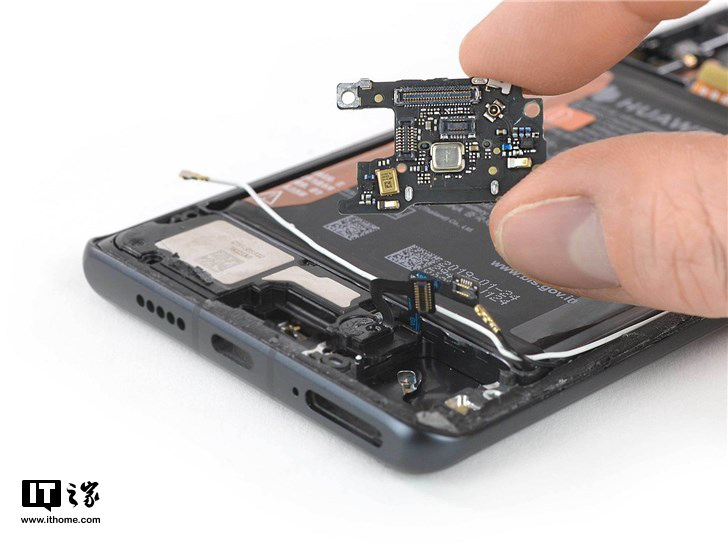USB-C 接口另一侧则是扬声器模块,这里华为 P30 Pro 的扬声器模块也是接纳模块化设想。