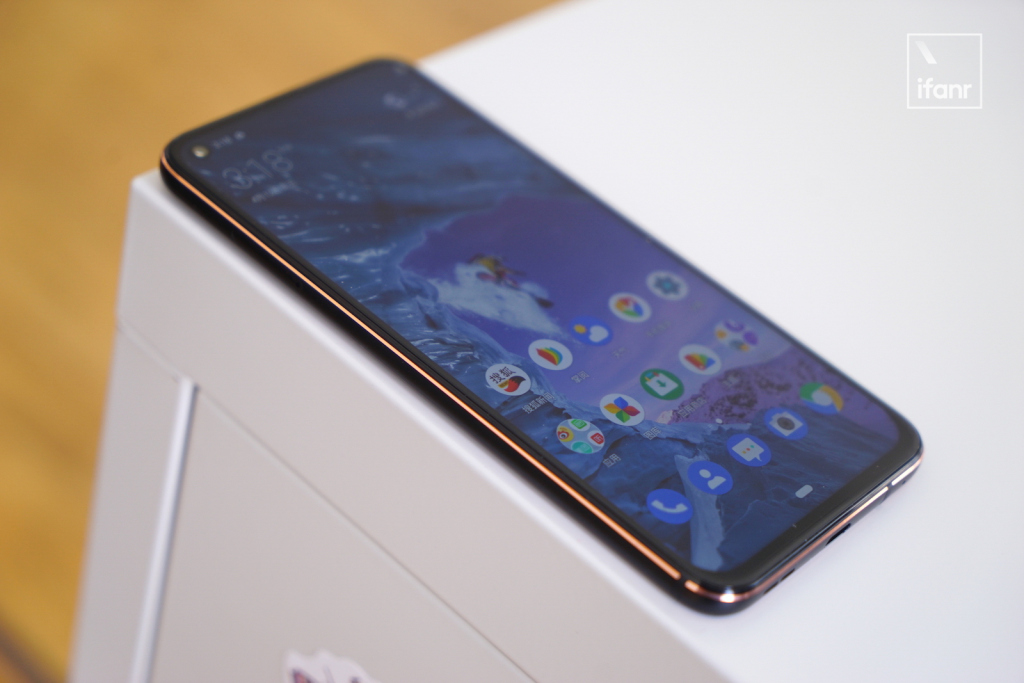 屏幕上最显眼的天然是位于左上角的前置摄像头了,打孔计划看起来应当不是通孔,孔径不大,比采用了通孔设想的三星 A8s 要小上许多,应当是采用了盲孔的计划。然则这个打孔的地位和屏幕的圆角弧度并没有在一条线上,关于强迫症患者来讲能够会以为有点难熬痛苦。