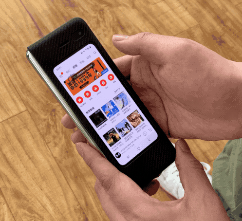 然则掀开手机后倒是另一番征象,当 21:9 的屏幕拼在一起时,你会获得一块比如今市面上任何一款手机还要大和绮丽的 7.3 英寸屏幕。