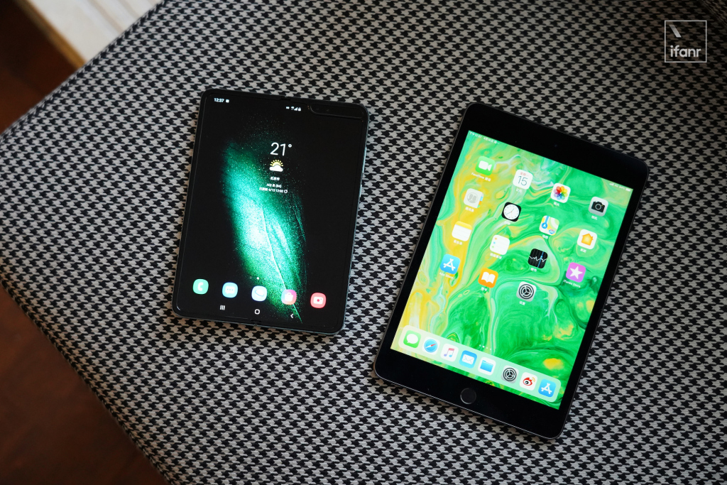 在全部运用过程当中,我一直以为 Galaxy Fold 好像在那里缺少了一点甚么东西,直到我看到了 iPad mini 旁边那支 Apple Pencil。