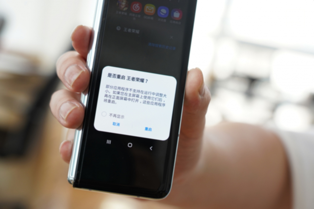 从外屏切换到内屏时,这个行动被三星以为是「继承」,以是无论是在外屏掀开了甚么运用顺序,掀开折叠的内屏时都邑继承适才的行动,哪怕运用本身不支撑运转中调治巨细,内屏也会以一种相似「iPad 式放大」的情势将运用以外屏比例的运转。