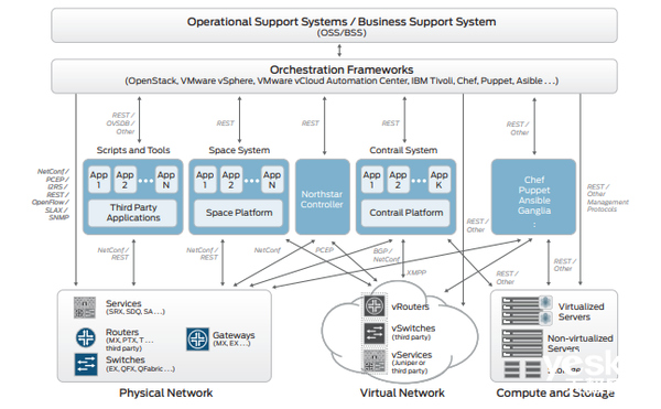 Juniper 将其 vMX 假造路由器定位为 Juniper MX 系列 3D 通用边沿路由器的软件版本。vMX 的额外速度为 160 Gbps,是 MX104 物理路由器吞吐量的两倍,它在规范 x86 效劳器和 VMware 的 ESXi 假造机治理程序平台上运转。