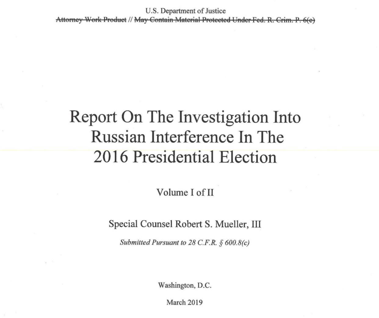 @央视【美司法部宣告迥殊检察官穆勒申报全文:特朗普未“通俄"】当地时候4月18日周四,美国司法部在其官网宣告了迥殊检察官罗伯特-穆勒对特朗普团队“通俄”观察的申报全文。