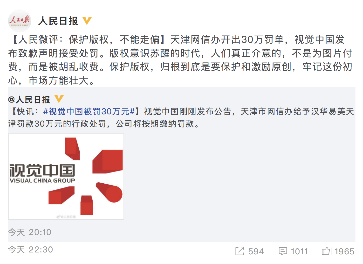 昨晚,视觉中国的处分来了:天津网信办赋予视觉中国主体30万元罚款。随后。视觉中国宣告了道歉信。