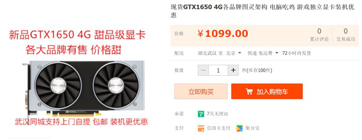 稍早前,着名硬件外媒 VideoCardz 曝光了英伟达 GTX 1650 的设置装备摆设和售价信息,GTX 1650 将搭载 896 个流处理器,售价 149 美圆,约合人民币 1000 元。如今这款显卡也在国内电商平台上架,1099 元起,称 4 月 23 日发货。