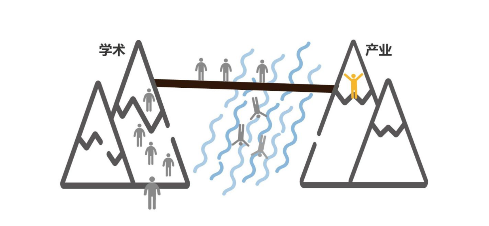 图 2: TIC (Technology Innovation Center) 充其量也就是衔接不稳的一座阳关道。 过 桥者有很大几率的要掉下去 (事实上手艺转化胜利率一支很低)。