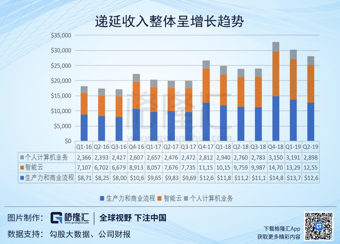 因为定阅形式的缘由,微软的预收才能大大增进,不只先收现金,后供应效劳,同时大大降低了将来收入的不确定性。