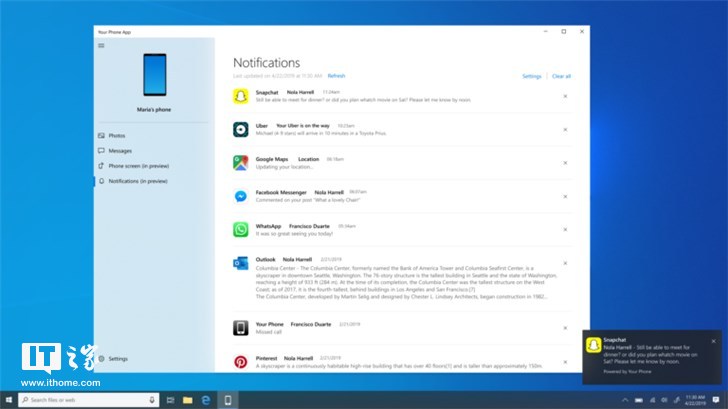 这一版本的你的手机运用中,用户能够经由过程你的手机运用吸收手机的来电关照、自定义要吸收的关照、消灭关照能功用。这一功用将来也将逐渐推行到19H1的内测版本中。不外可能会花些时候能力逐渐更新。新版的你的手机,将来也将会上岸Windows 10 1803更新及以上版本中,别的,支撑的手机将来会推行到安卓7.0以上版本。