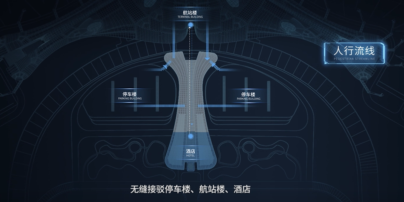 华润置地中心与机场航站楼直接连通,是停车楼旅客、机场快轨旅客、酒店客户进出航站楼的必经之路。便利的交通不仅为空港商旅经济带来了发展契机,也正在激活区域商务基因。