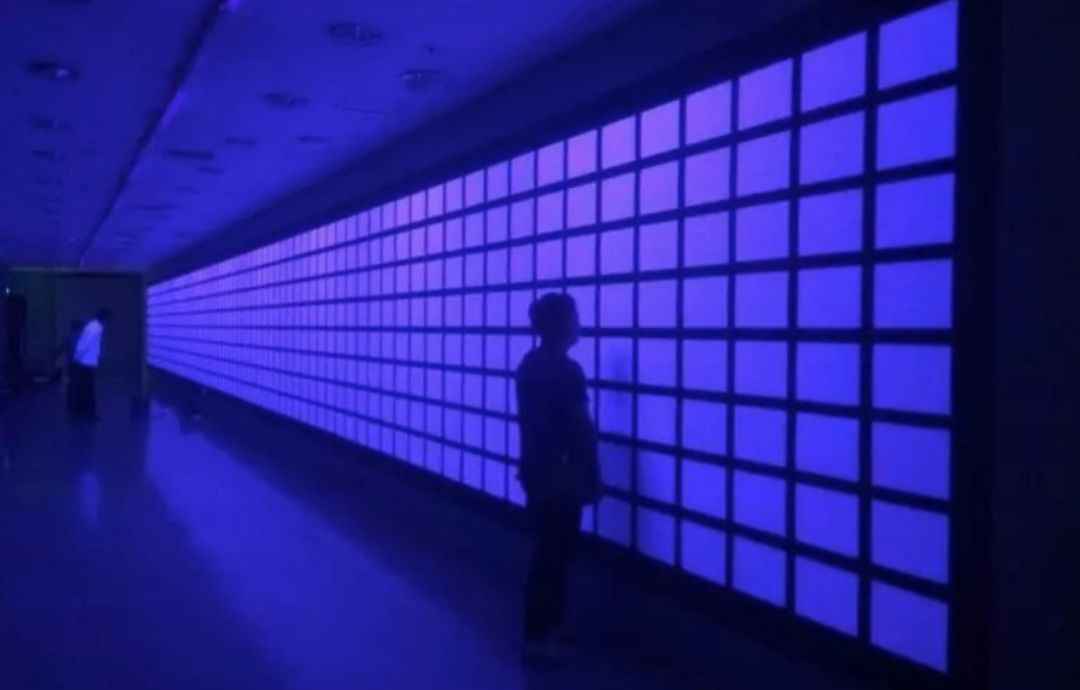 展厅被幽蓝色的灯光笼罩,墙体上投射着密布的个人信息:姓名,年龄,上周在哪里买过包,去年春节去哪里旅过游……
