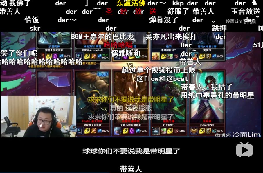 但孙笑川作为不那么优秀的选手,面对弹幕辱骂,气不过只能反击。时间长了,他也总结出规律,粉丝喜欢看他操着一口川普骂人,以及打输游戏气急败坏喷队友的样子。他的脏话带有语言最原始的能量,时常能别出心裁,颇具“直播效果”。他给自己定了人设,技术差,脾气大。渐渐的,大家接受了这个脾气暴躁的胖子,他成了身上有梗的人,这意味着他有了人气,骂声也渐渐不那么千篇一律了。