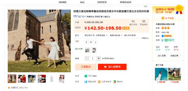 两家店铺在热销商品上则实现了“差异化”。淘宝店铺中销量高达20385件的“2019春季新款流行裙子春秋长款法式气质甜美吊带连衣裙女”,北京商报记者通过更换不同的搜索关键词,均无法在拼多多“大喜服饰旗舰店”找到。拼多多“大喜服饰旗舰店”中一款名为“大喜自制2019春季新款格子蝴蝶结长袖显瘦sukol裙复古a字连衣裙”的商品,在淘宝“大喜自制独立复古女装”中搜索2019春季新款、a字连衣裙、格子、蝴蝶结关键词后,均无上述商品。在拼多多“大喜服饰旗舰店”,该商品拼单价108元,特卖价75.6元,总售29件为该店总销售量最多的一件商品。