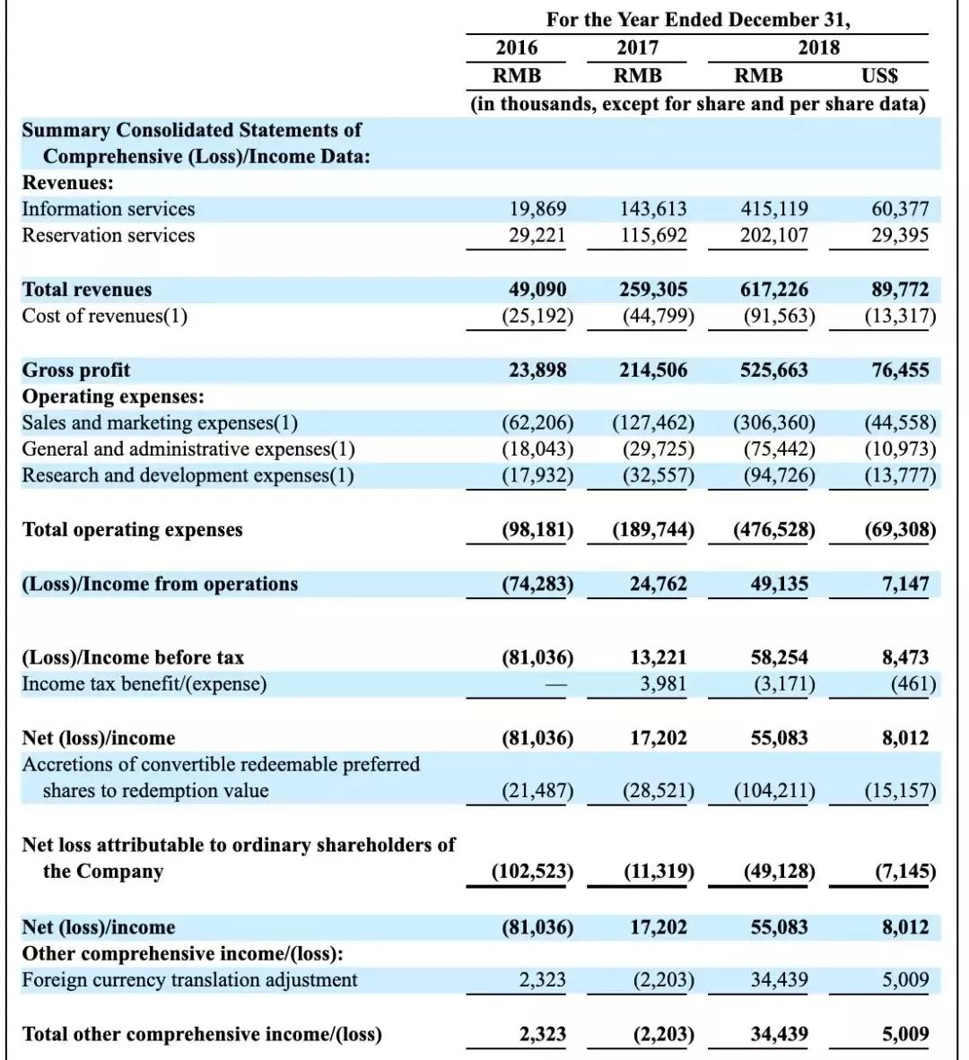 营收:新氧的总营收从2016年0.49亿元上升至2017年的2.59亿元,增速高达428%;2018年总营收增长138%至6.17亿元。