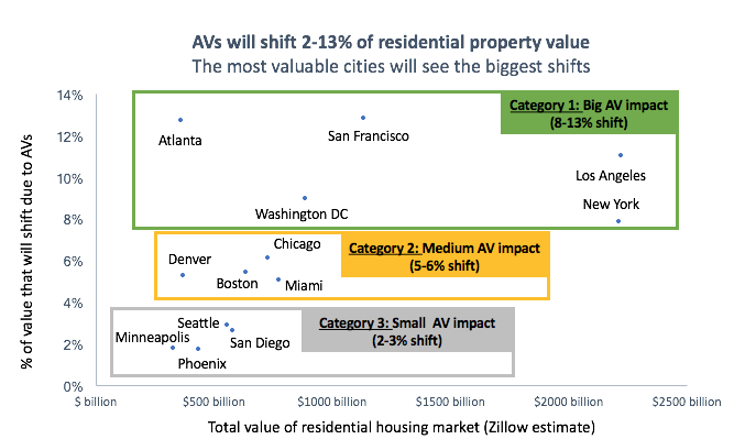 1 万亿美圆听起来是个很大的数字,但这重要是由于房地产市场本身就充足伟大。据美国最大的房地产在线广告商 Zillow 预计,美国室庐总代价凌驾 29.6 万亿美圆。这意味着,由无人驾驶手艺驱动的代价转移占总物业代价的 2% 至 13%。