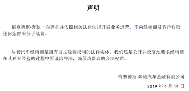 @快科技【疾驰回应1.5万金融效劳费:一直依法依规运营】就车主被迫交纳金融效劳费1.5万一事,梅赛德斯·疾驰宣布声明称:一直尊敬并遵照相干执法法规开展营业运营,不向经销商及客户收取任何金融效劳手续费。梅赛德斯·疾驰公然并重复请求经销商要诚信遵法,确保消费者的合法权益。