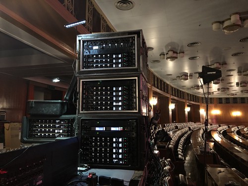 虽然云云,本着精美绝伦的准绳,工程师们还在舞台上架设的天线方面做了缜密的布置。一组天线架设于观众席后方调音台地区,别的一组天线架设在舞台上,因为舞台距吸收机间隔较远,而且现场对铺设线缆请求极高,以是舞台上天线接纳光纤回传射频旌旗灯号计划(RFoF)。