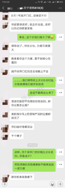 近日,苏宁易购采销和供货商对接人微信谈天截图被传至眽眽APP,引发普遍议论,一方说苏宁向来如此,供货商想要苏宁818的主要资本地位,就要割肉贬价,一方说苏宁这也太狠了,商家痛快不要列入。