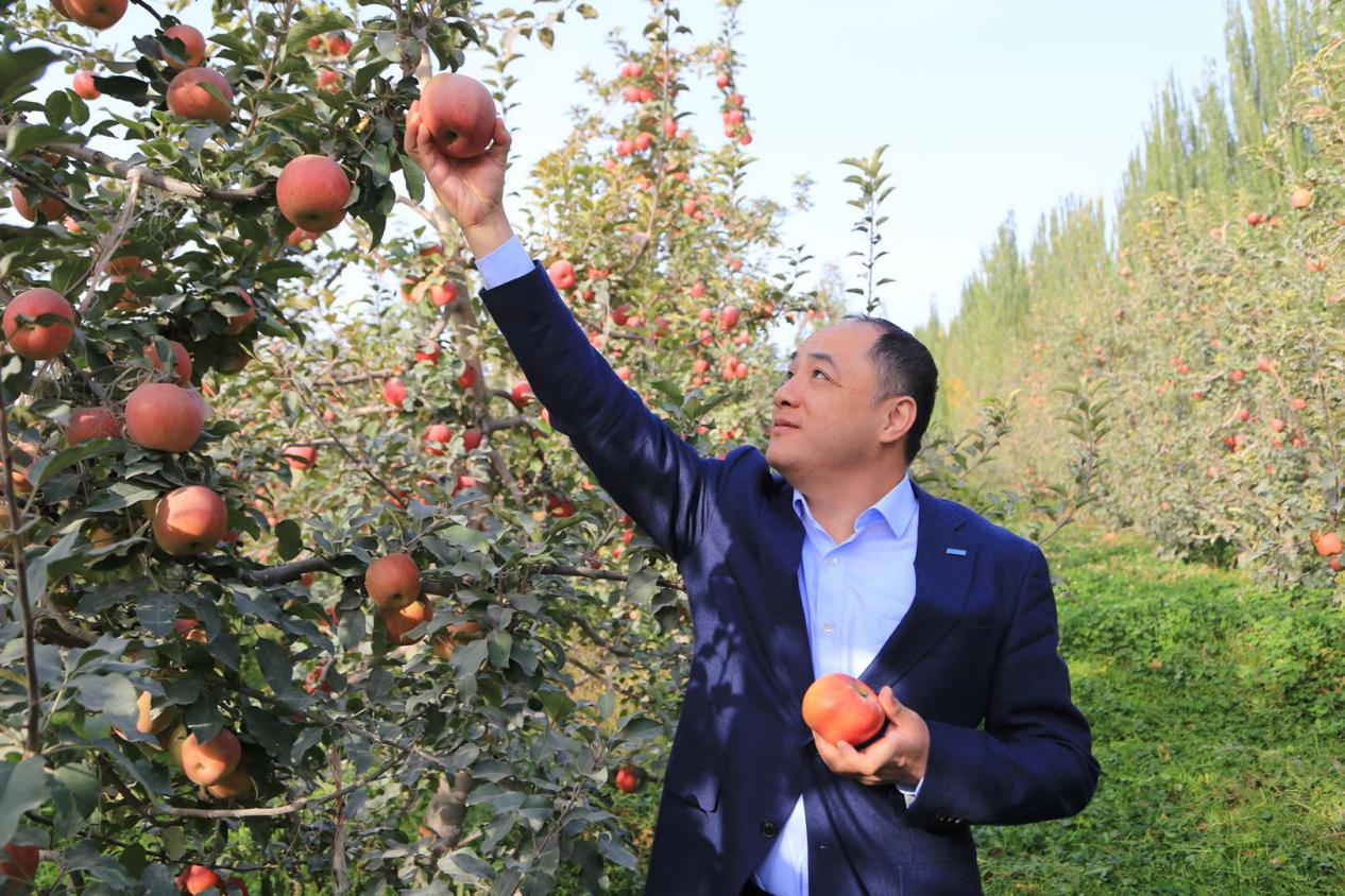 阿克苏地区是国度计划的苹果特征产区,阿克苏冰糖心苹果举世闻名,深受消费者喜欢。在阿克苏苹果莳植基地,卞农观察果树莳植和发展状况,并亲自从树上摘下成熟的果实,现场品味,测试糖度,磨练生果质量。