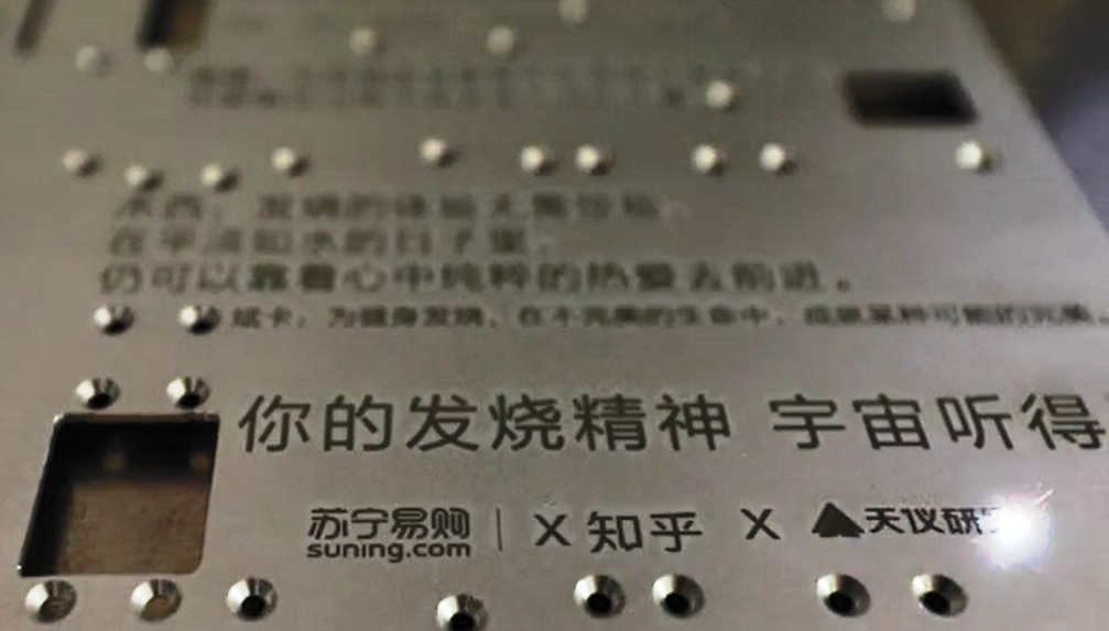 在两个多月前的苏宁易购818时期,苏宁拼购团结天仪研究院和知乎,经由过程拼卫星运动收集了众多苏宁拼购用户的希望,“我们把妄想的声响传到外太空,用卫星帮你说出你的希望。”经由挑选,30名用户的希望由激光雕刻手艺镌刻在天仪研究院卫星金属板上,终究10月29日在酒泉卫星发射中间胜利发射,承载着人类“发热精力”的卫星进入太空。